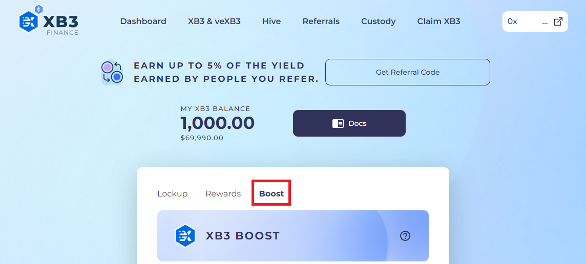 1\) On the same "**XB3 & veXB3**" page, scroll down and click on the "**Boost**" tab.